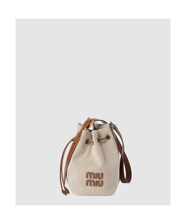 • 미우미우 캔버스 및 가죽 버킷 미듐백 5BE090