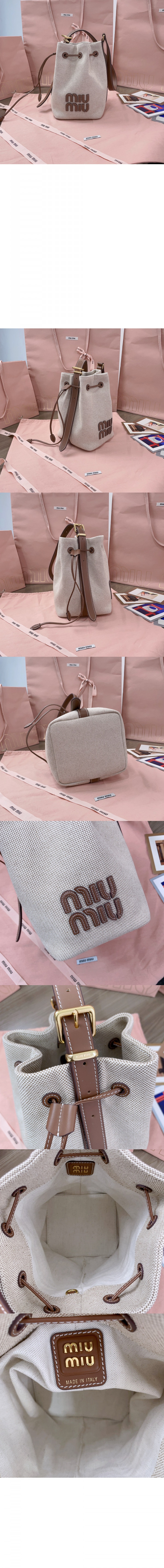 미우미우 캔버스 및 가죽 버킷 미듐백 5BE090