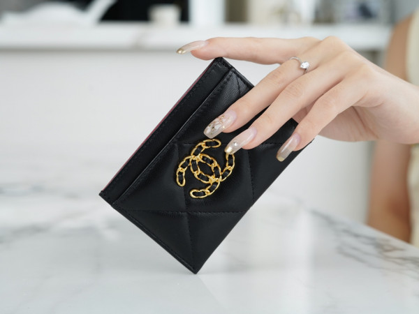 • 샤넬 카드 지갑 램스킨 금장 블랙 AP1167