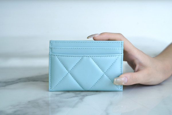 • 샤넬 카드 지갑 램스킨 금장 스카이 AP1167