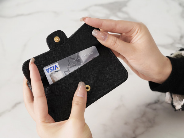 • 샤넬 클래식 플랫 지퍼 카드지갑 캐비어 금장 AP2570