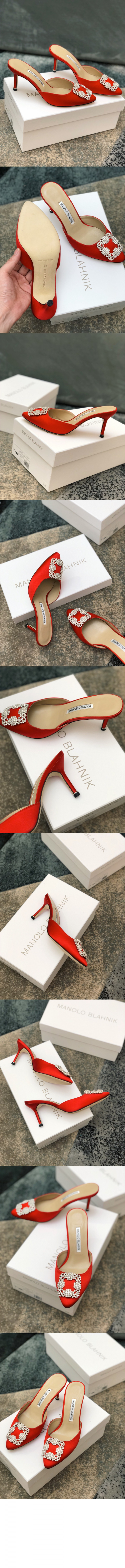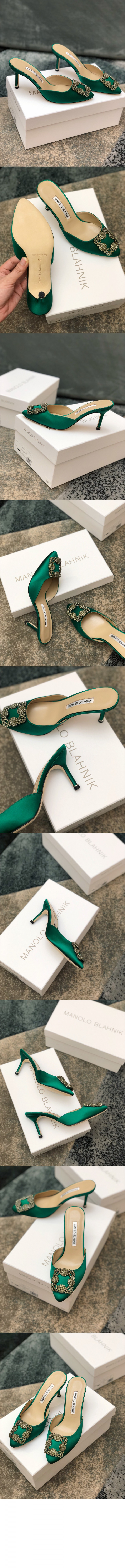 마놀로블라닉 행지시무 새틴 쥬얼 뮬