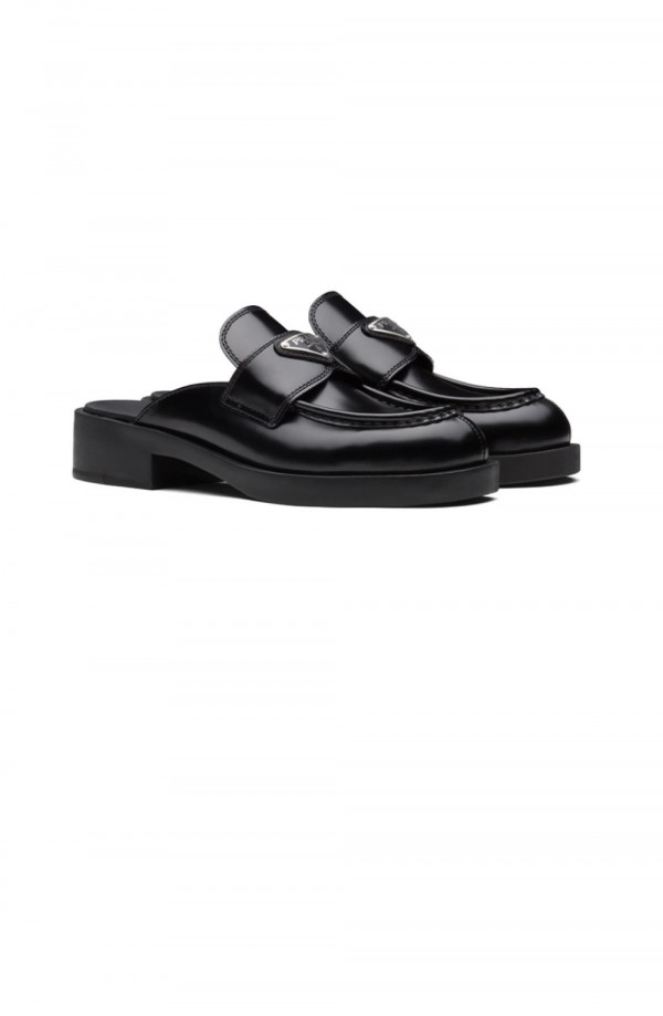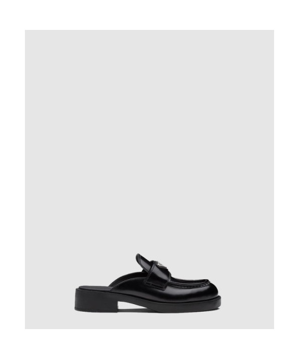 프라다 초콜릿 브러시드 레더 뮬 1D652M