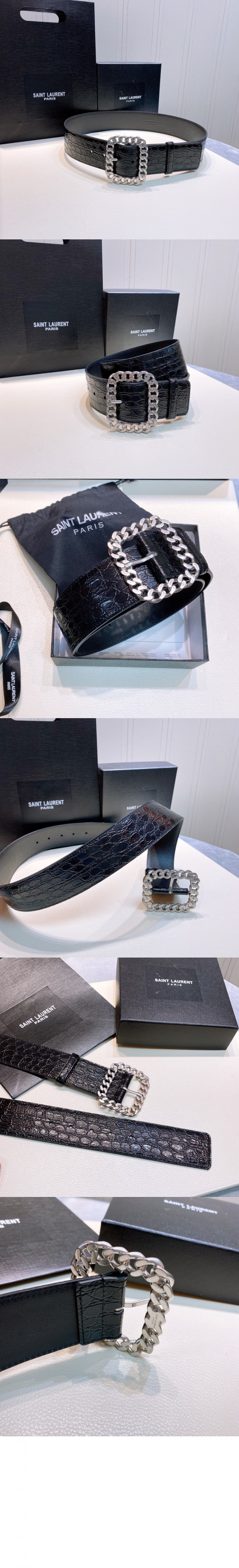 생로랑 악어 사각 체인 버클 벨트 640567