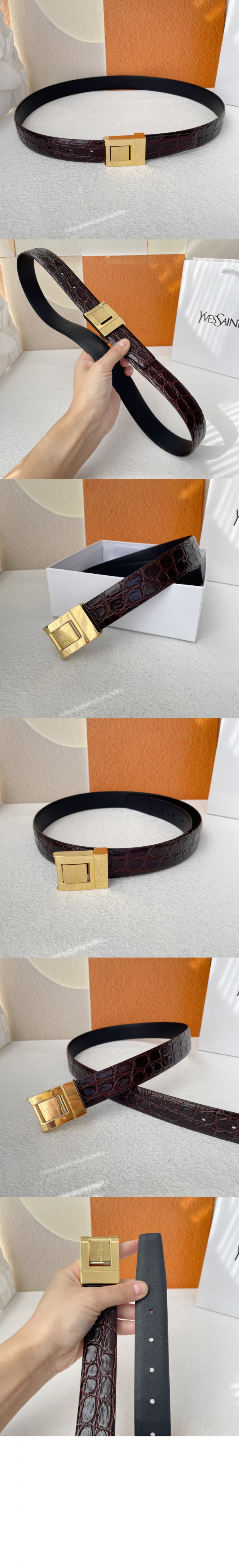 • 생로랑 악어 엠보 가죽 버클 협벨트 658518