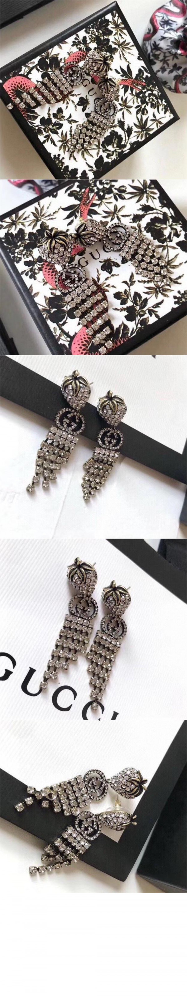 구찌 크리스탈 스트로베리 귀걸이 580959