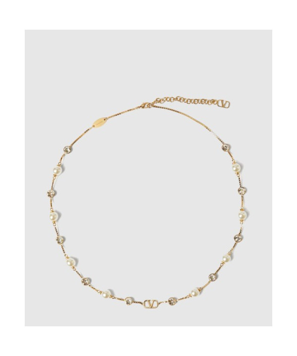 발렌티노 크리스털 장식 브이로고 시그니처 메탈 네크리스