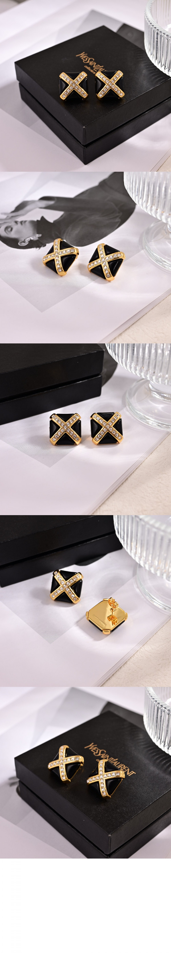 생로랑 레진과 메탈 소재의 크리스탈 크로스 이어링 805022
