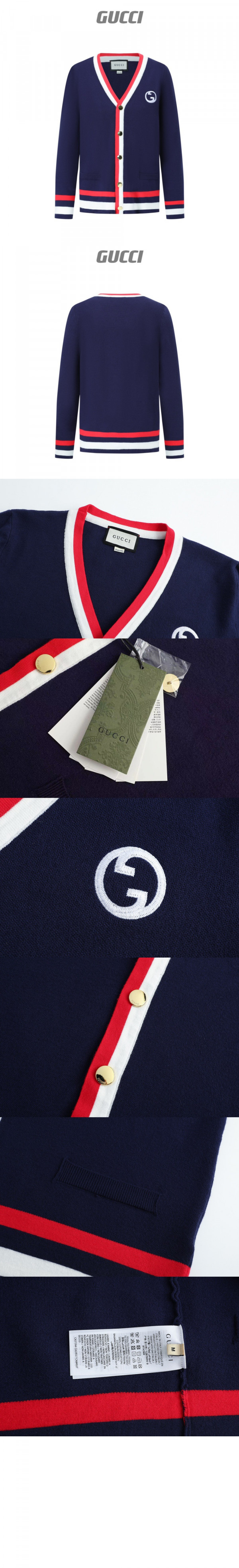구찌 로고 자수 웨빙 니트 가디건