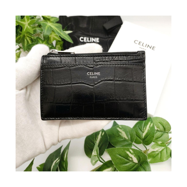 • 셀린느 지퍼 카드 홀더 크로커다일 엠보스 카프스킨 블랙