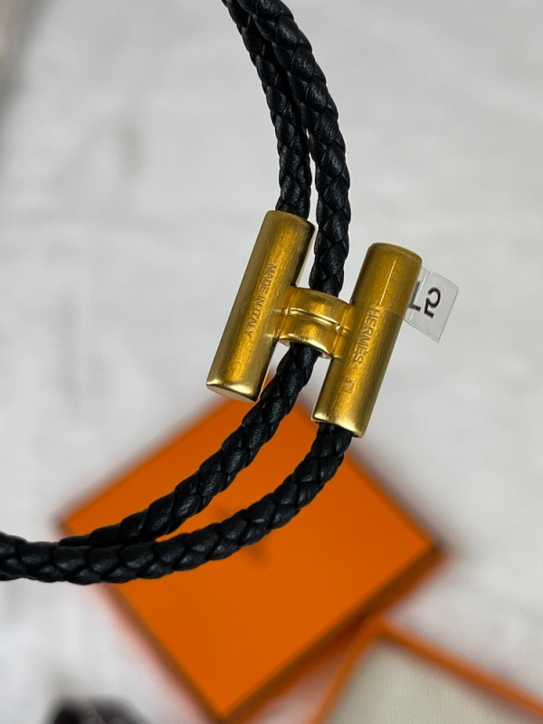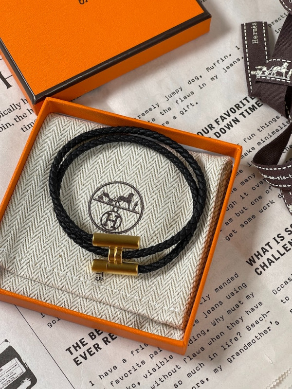 에르메스 Tournis Tresse 팔찌 블랙 금장