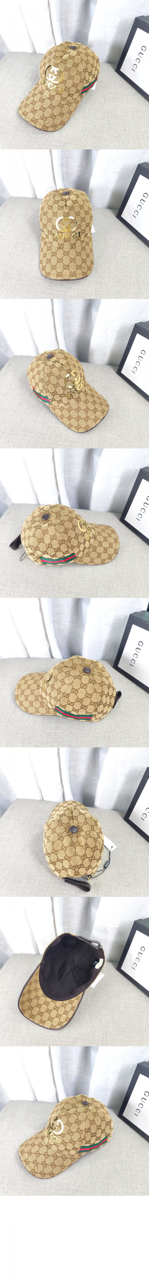 구찌 골드 로고 웨빙 베이스볼 캡 200035