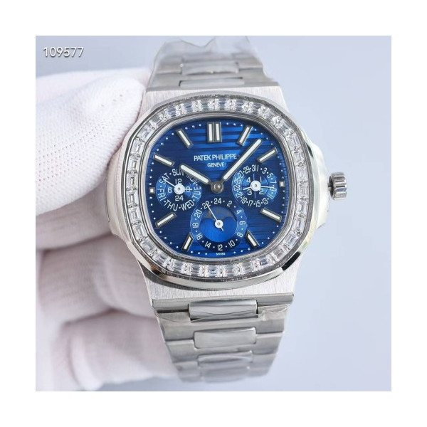 • 파텍필립 노틸러스 퍼페츄얼 캘린더 바게뜨 다이아 블루 컬러 시계 워치