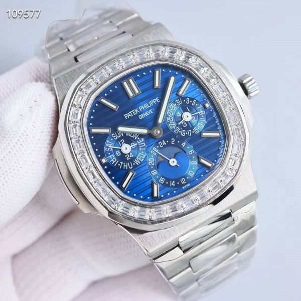 파텍필립 노틸러스 퍼페츄얼 캘린더 바게뜨 다이아 블루 컬러 시계 워치