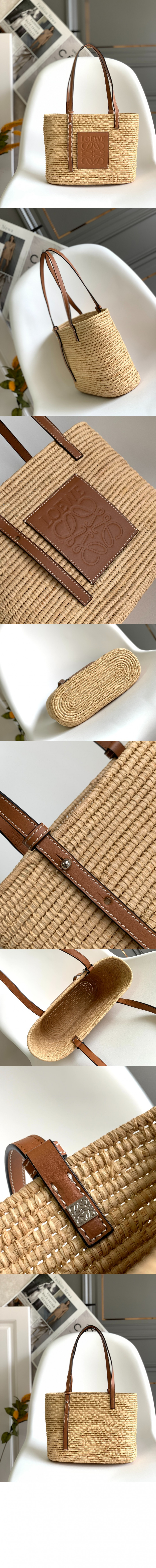 로에베 스몰 바스켓 백 - 라피아 & 카프스킨