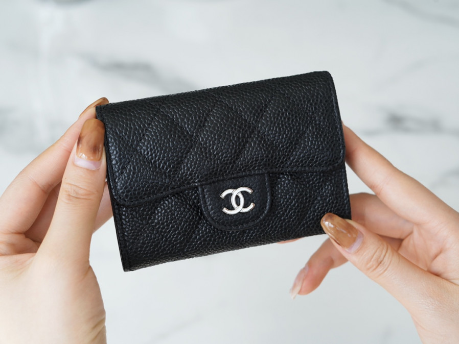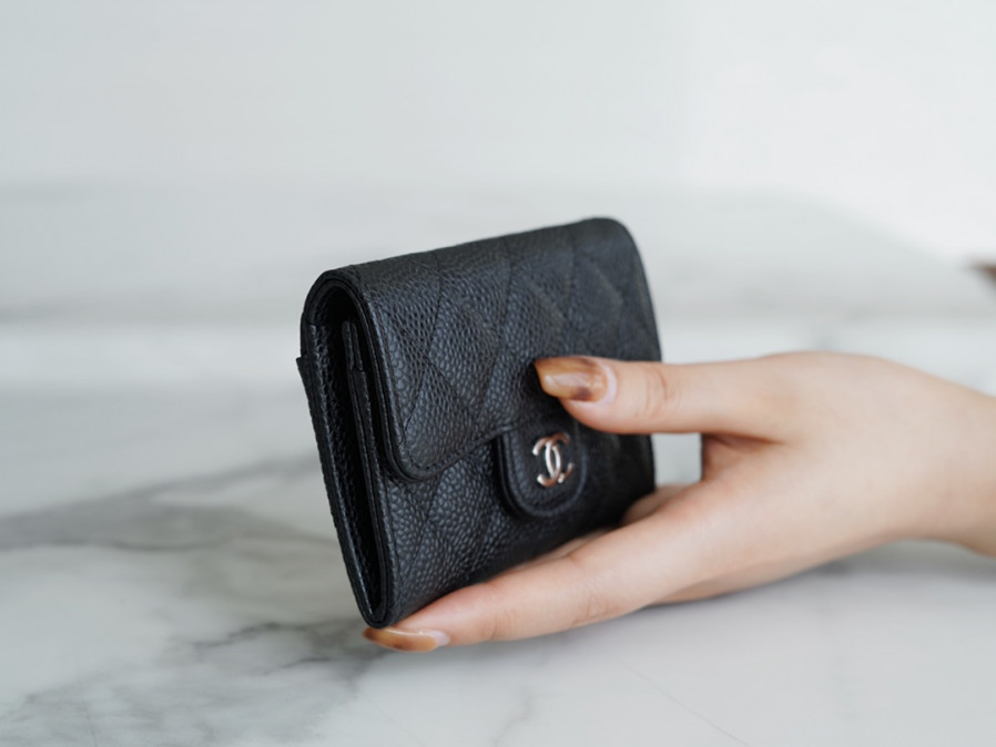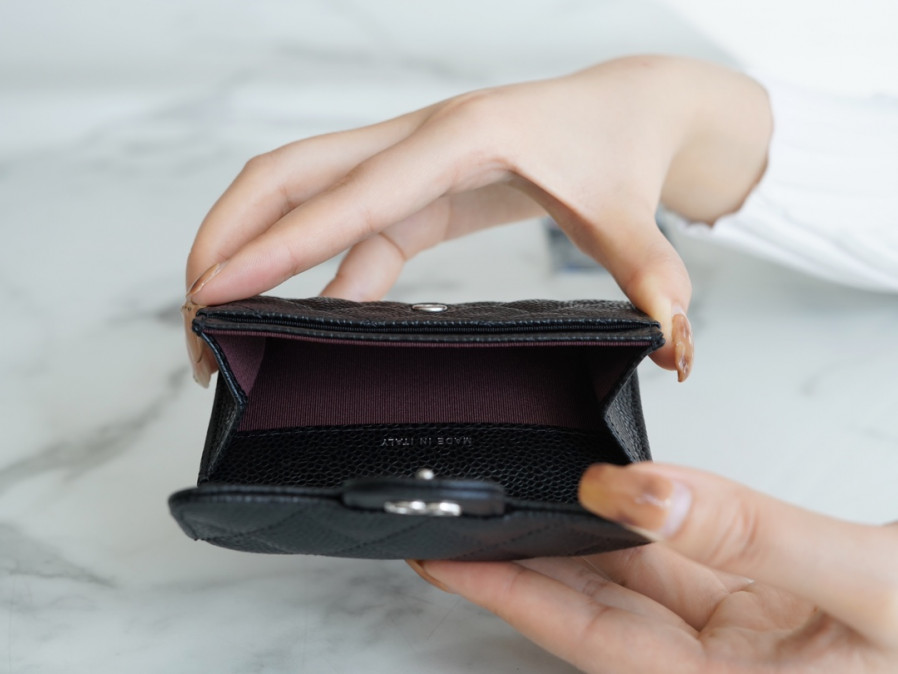 샤넬 클래식 똑딱이 카드지갑 캐비어 은장 02 AP0214