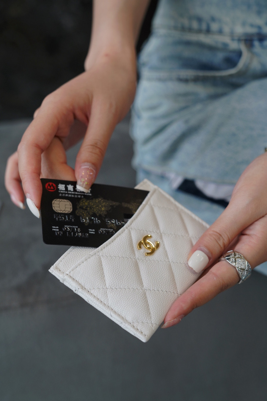 샤넬 클래식 카드지갑 캐비어 금장 화이트 AP0213