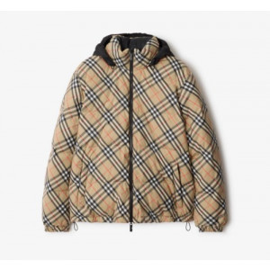버버리 리버시블 체크 후드 퍼퍼 재킷