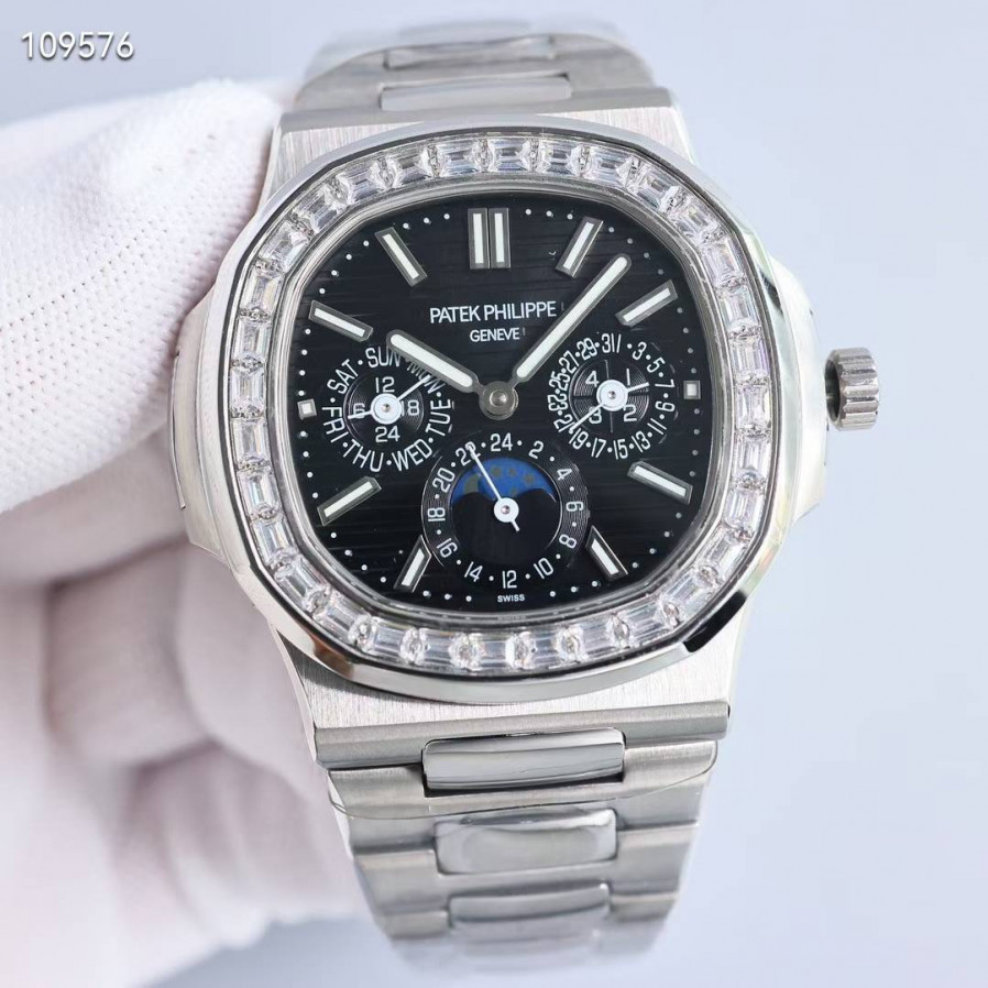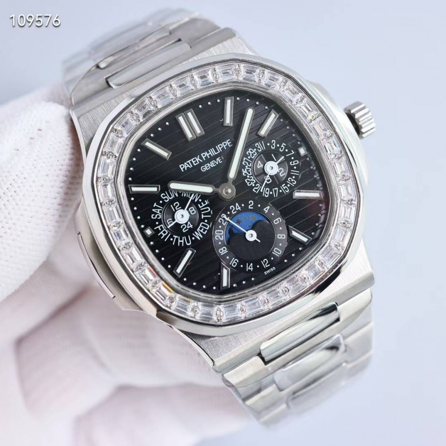 파텍필립 노틸러스 퍼페츄얼 캘린더 바게뜨 다이아 블랙 컬러 시계 워치
