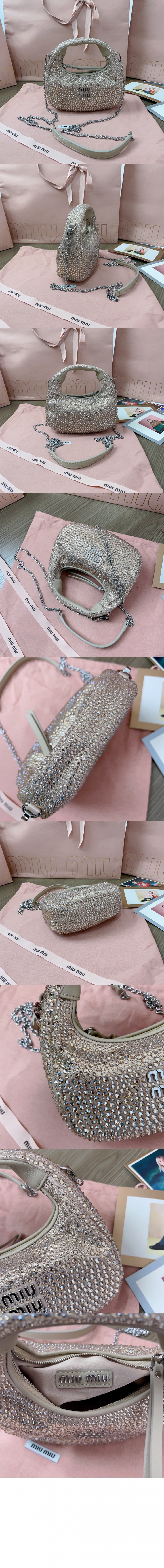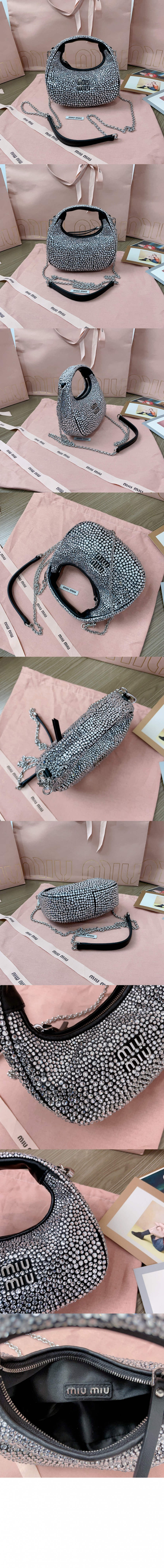 미우미우 완더 세틴 크리스털 미니 호보 백 5BP078