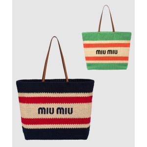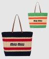 미우미우 라피아 앤 코튼 토트백 5BG228