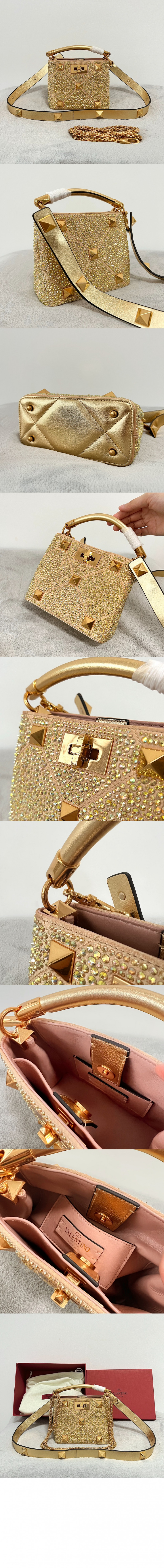 발렌티노 ROMAN STUD 미니 라인스톤 토트백