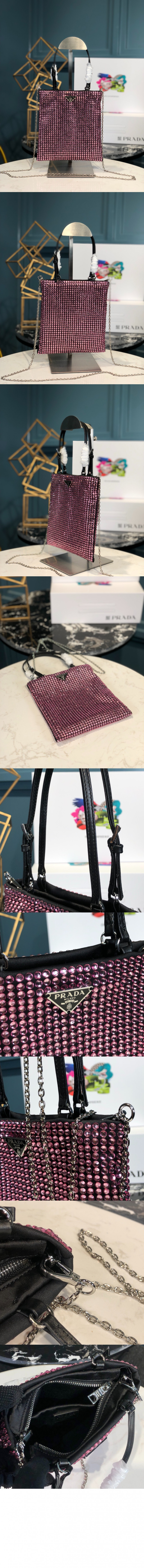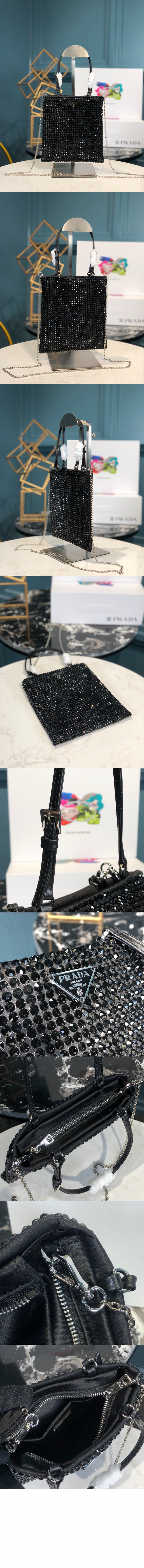 프라다 크리스탈 새틴 핸드백 1BA253