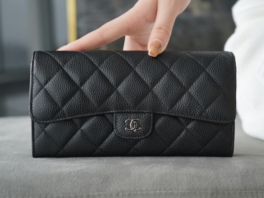 샤넬 똑딱이 장지갑 캐비어 은장 AP0241