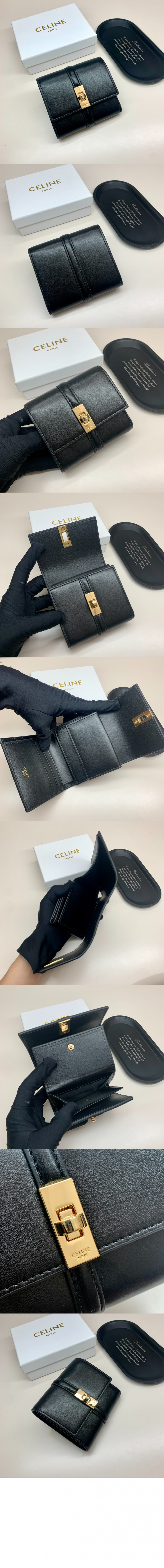 셀린느 스몰 16 3단 지갑 새틴 카프스킨 10F523