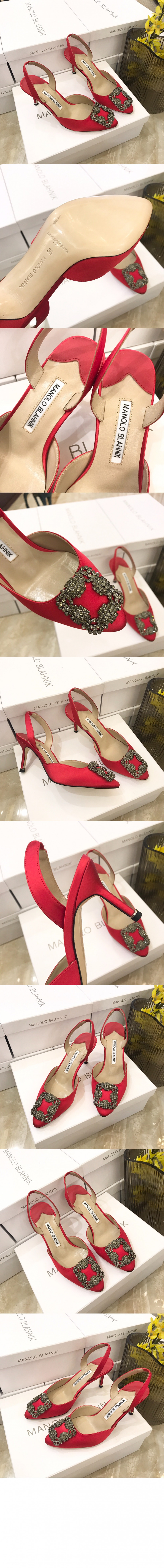 마놀로블라닉 행지시무 새틴 쥬얼 뮬