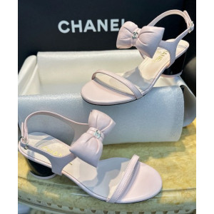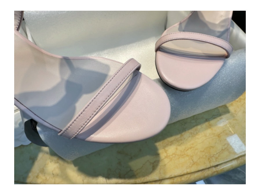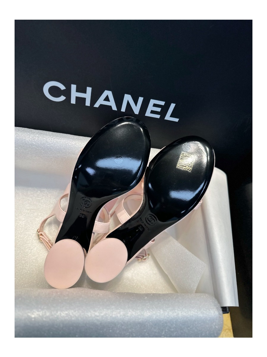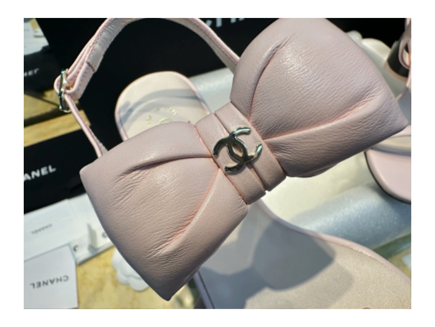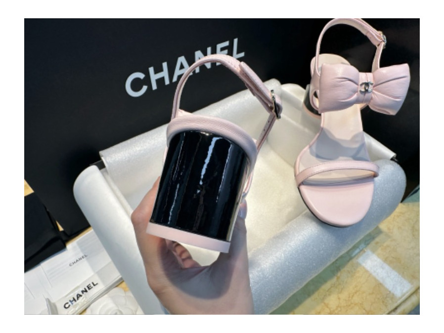 샤넬 리본 스트랩 미들힐 핑크 샌들