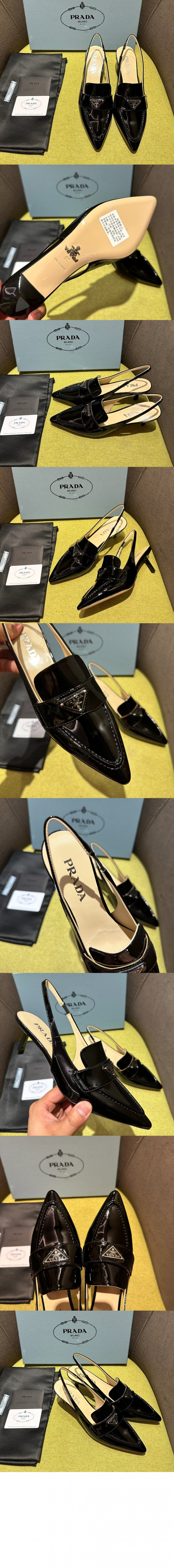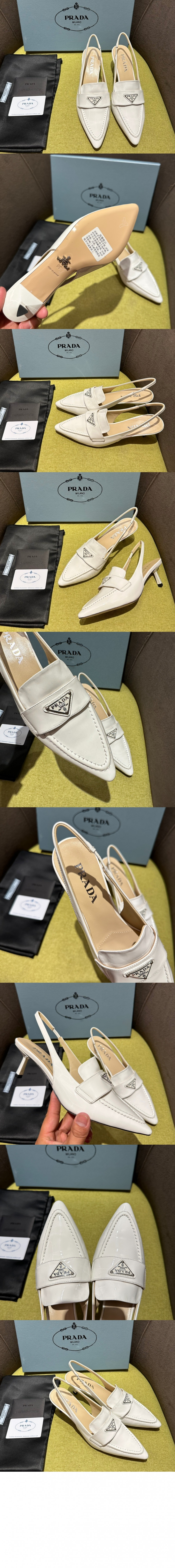 프라다 삼각로고 포인티드 슬링백 펌프스 1I901M