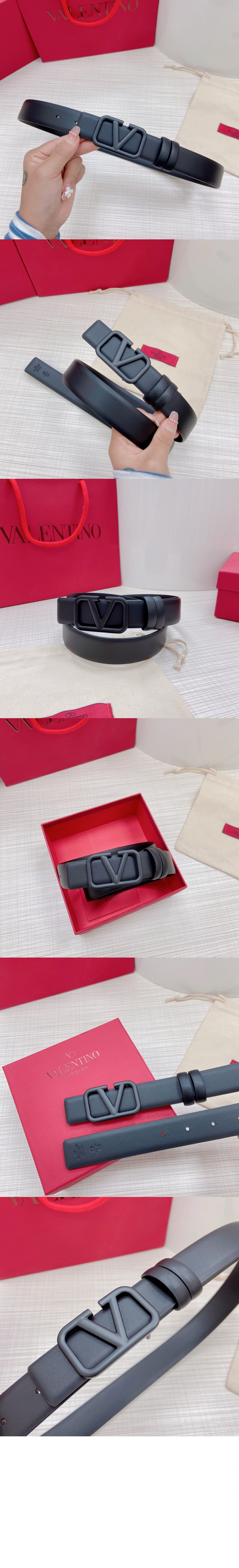 발렌티노 브이로고 시그니처 유광 송아지 가죽 벨트