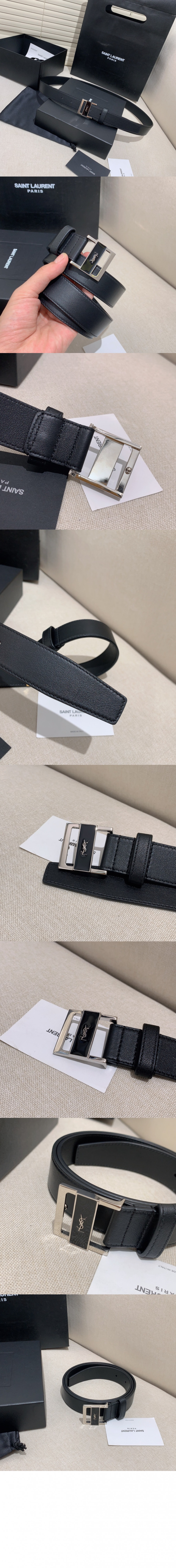 생로랑 유광 가죽 소재의 버클 슬림 벨트 777894