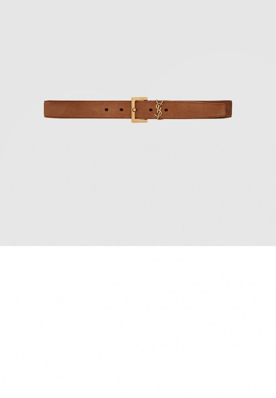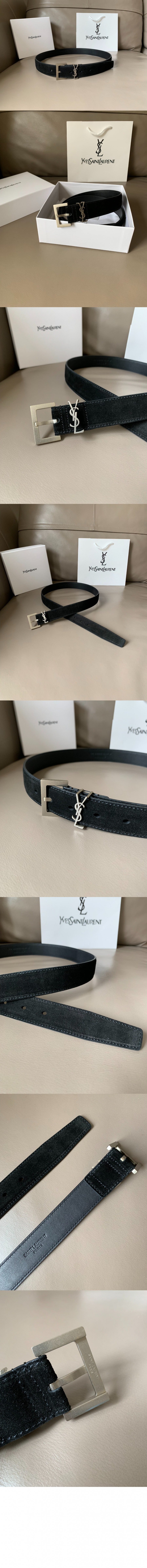 생로랑 스퀘어 버클을 장식한 스웨이드 소재의 CASSANDRE 벨트 634437