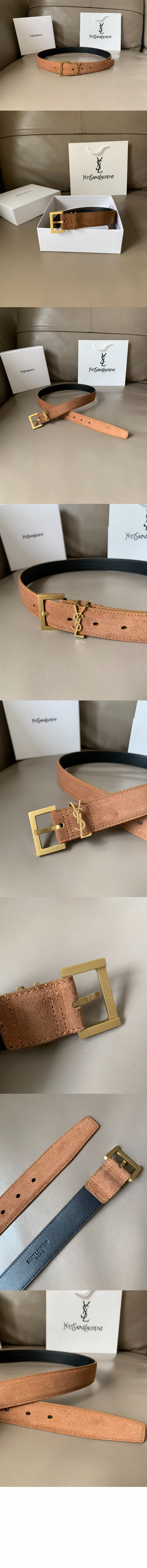 생로랑 스퀘어 버클을 장식한 스웨이드 소재의 CASSANDRE 벨트 634437 > 하이엔드 여성관