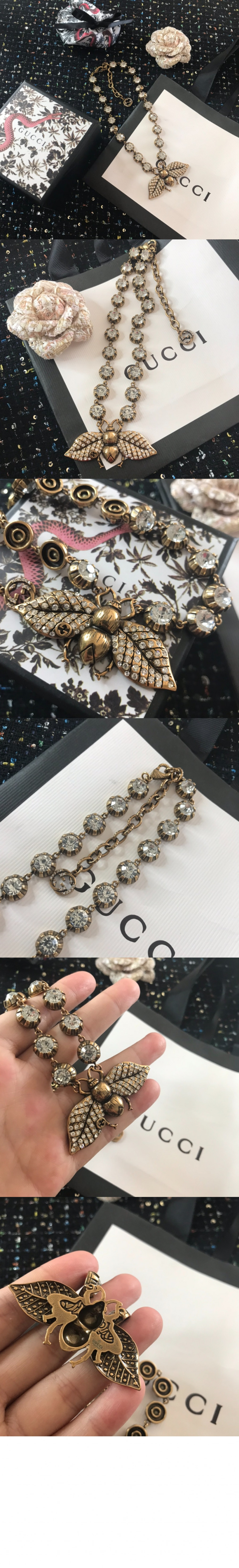 구찌 크리스탈 비 목걸이 629989