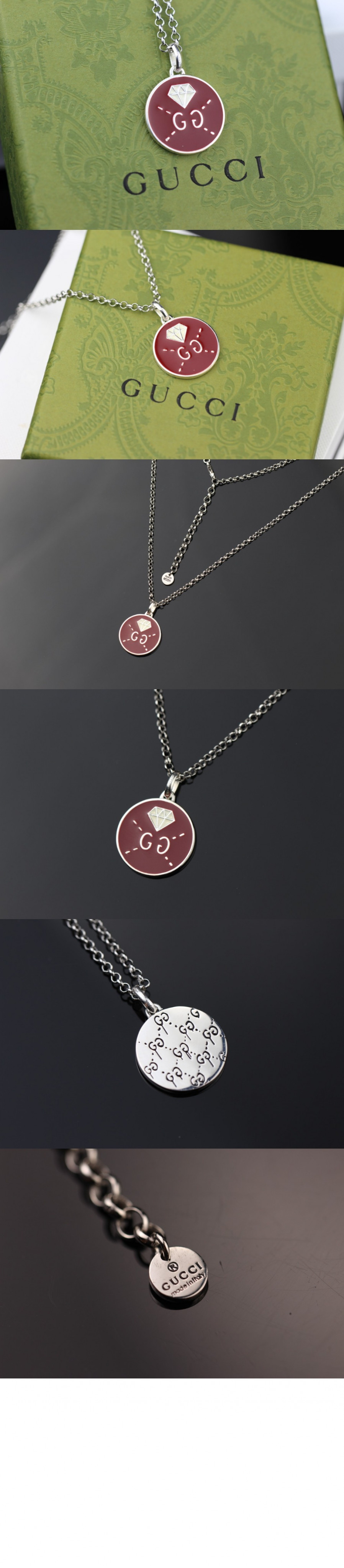 구찌 고스트 에나멜 서클 펜던트 목걸이 459358