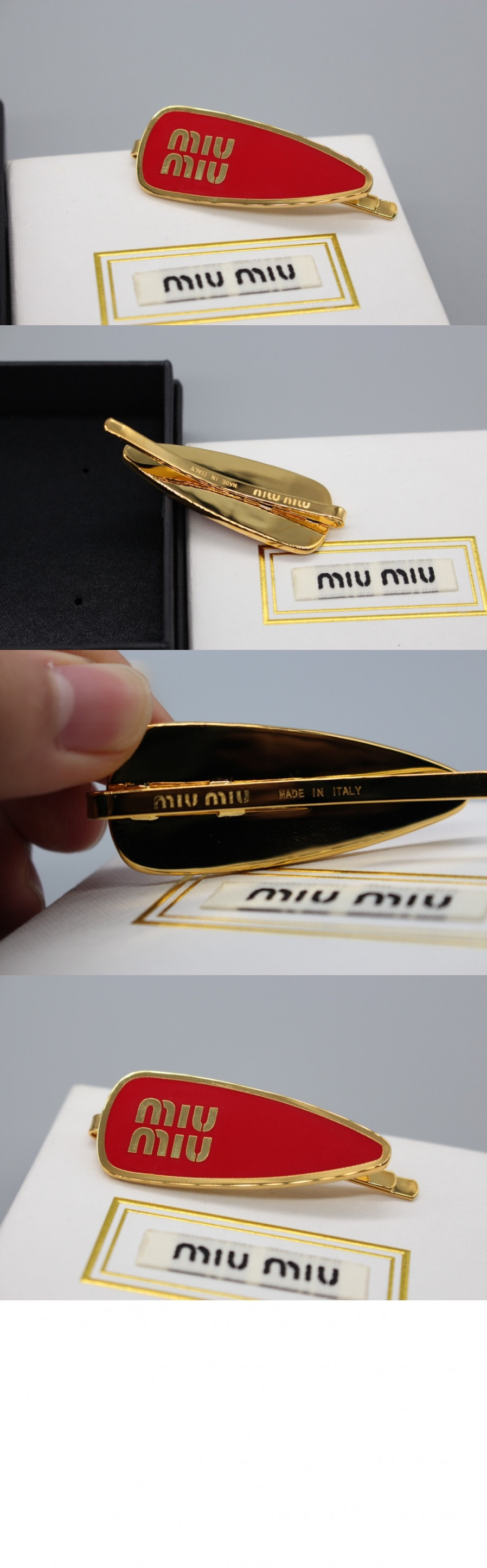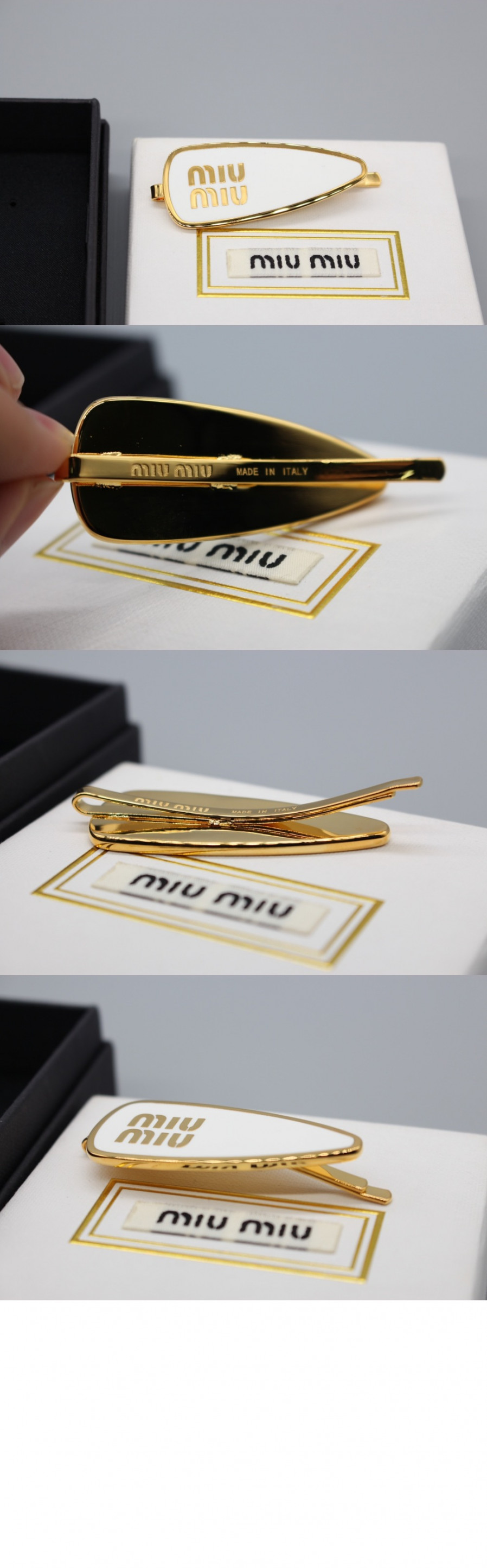 미우미우 에나멜 메탈 헤어 클립 5IF146