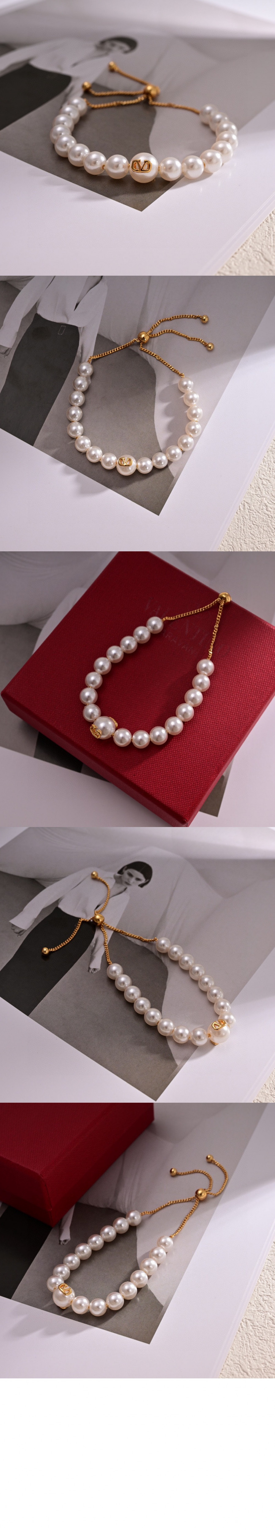 발렌티노 가라바니 브이로고 시그니쳐 메탈 이미테이션 펄 브레이슬릿