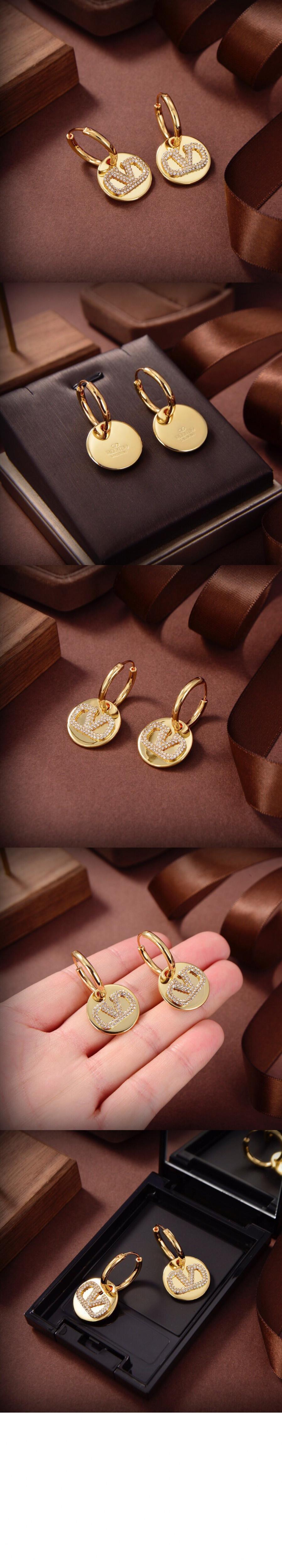 발렌티노 크리스털 장식 브이로고 시그니처 이어링