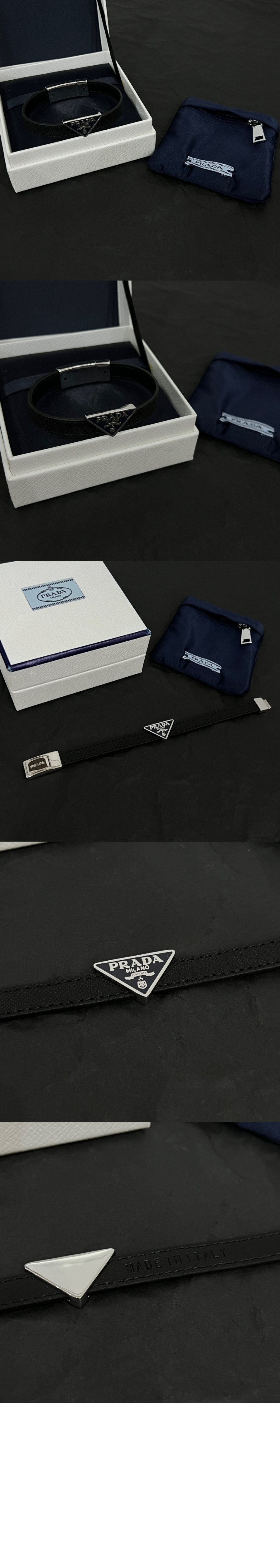 프라다 트라이앵글 로고 레더 브레이슬릿 2IB289