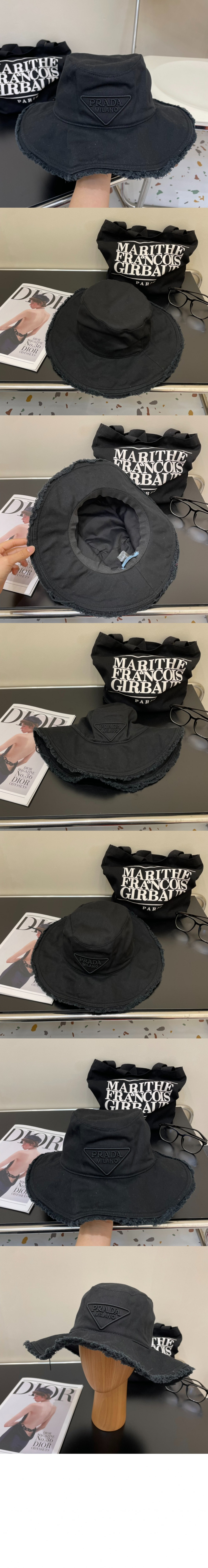 프라다 왕 챙 자수 선캡 UBD435