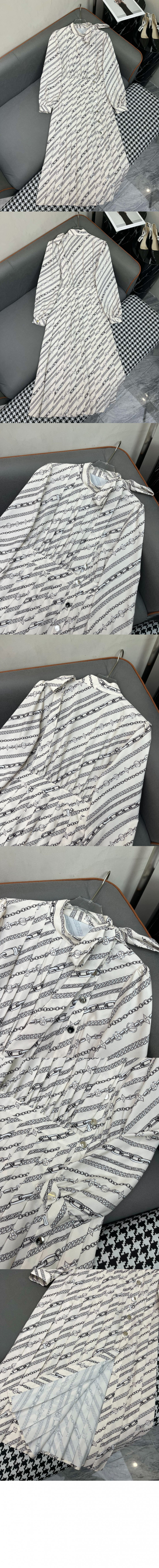 루이비통 롱 슬리브드 체인 프린트 드레스
