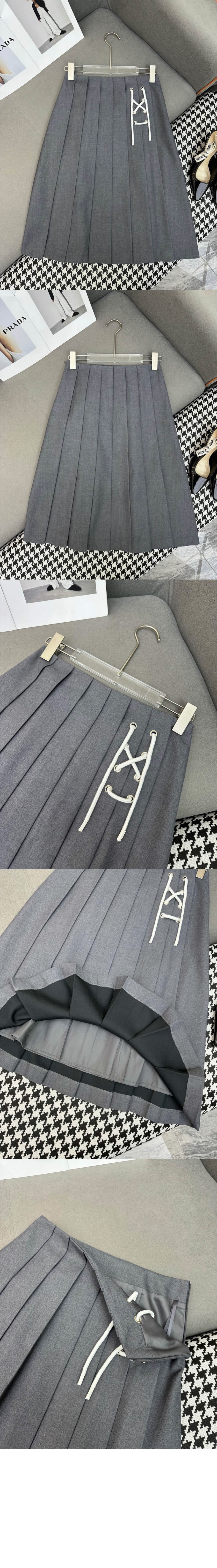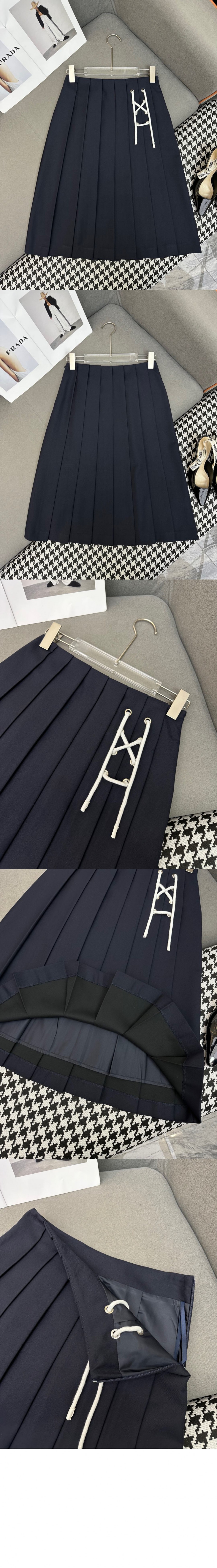 프라다 플리츠 개버딘 미디스커트