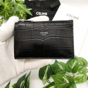 셀린느 지퍼 카드 홀더 크로커다일 엠보스 카프스킨 블랙