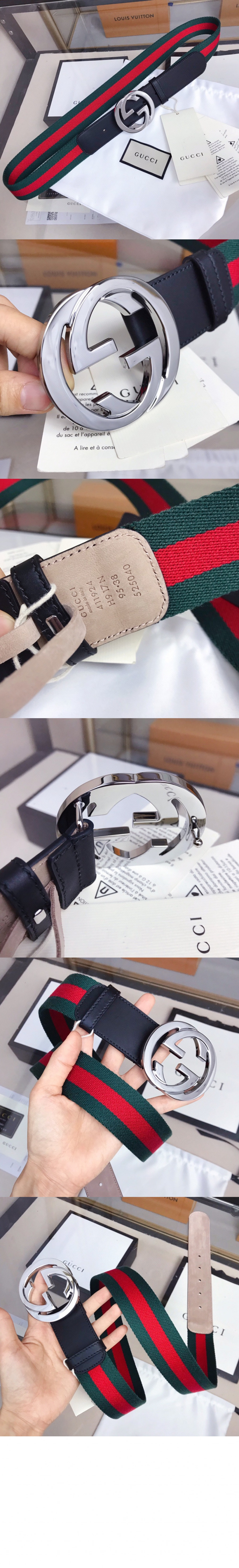 구찌 인터로킹 G 버클 웹 벨트 411924