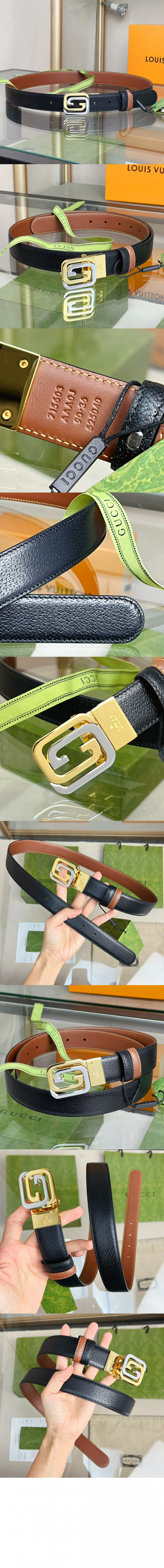 구찌 스퀘어드 인터로킹 G 리버서블 벨트 715603 > 하이엔드 남성관