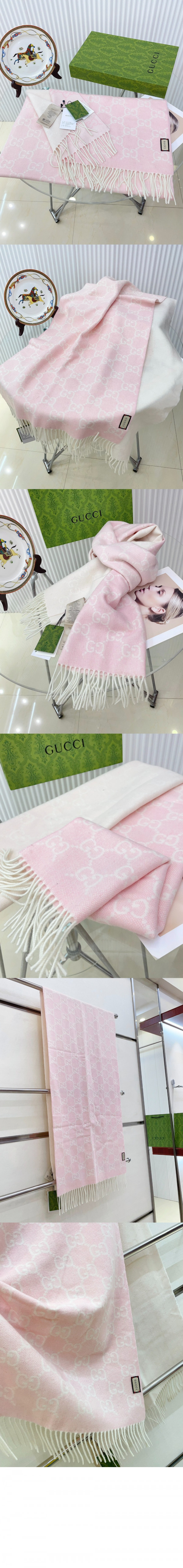 • 구찌 태슬 디테일의 GG 자카드 니트 스카프 764634