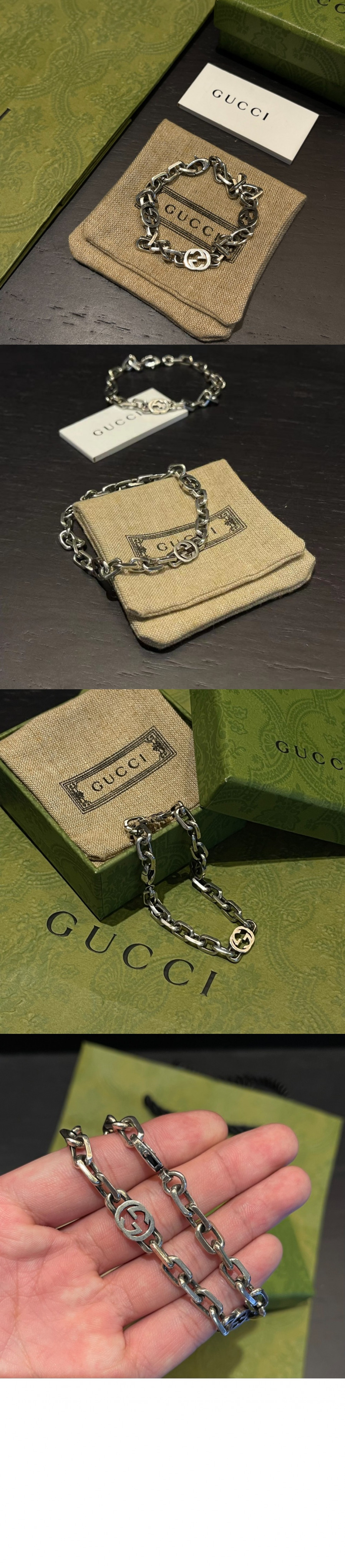 구찌 인터로킹 G 실버 체인 팔찌 454285